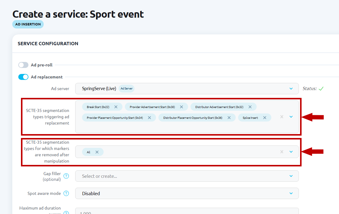 You can now select which SCTE-35 segmentation types should trigger ad insertions when using Ad Replacement in DAI services, as well as those to be removed from the manifest after processing. This offers more granular control over ad signaling, ensuring compatibility with downstream workflows and a cleaner output stream.